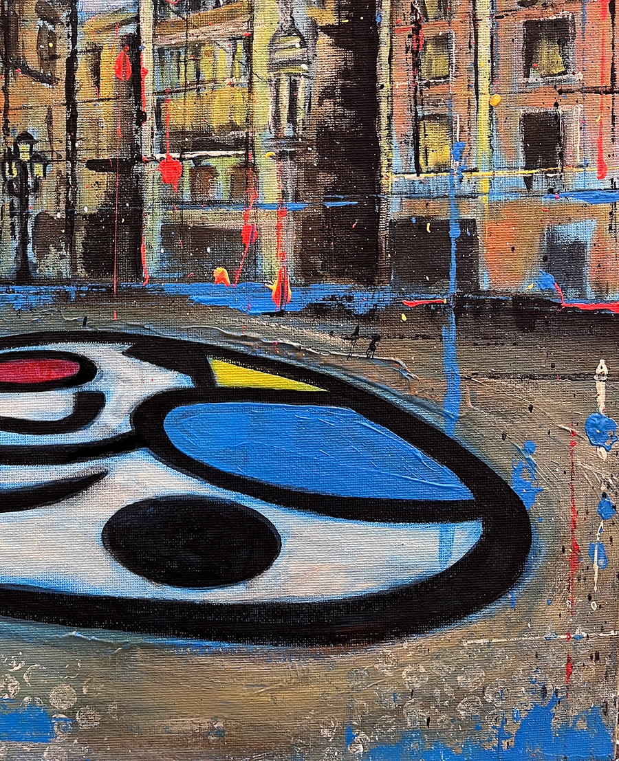 Figurative painting Rambles Mosaic by Jaume Tenes, celebrating Joan Miró’s Barcelona landmark