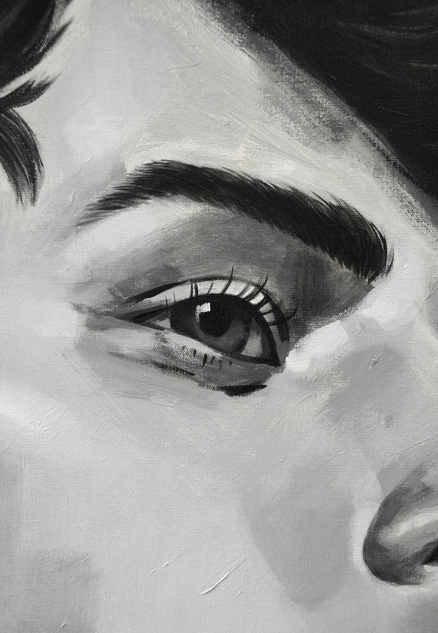 "We Are Not Alone", acrílico monocromo sobre lienzo de Jaume Tenes, pintura figurativa expresiva.